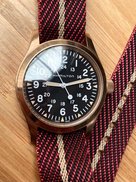 商品:Hamilton漢米爾頓手上鍊青銅皮帶飛行機械錶
