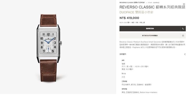 這隻為現行款中型雙時區reverso,尺寸是25.5mm*42.9mm