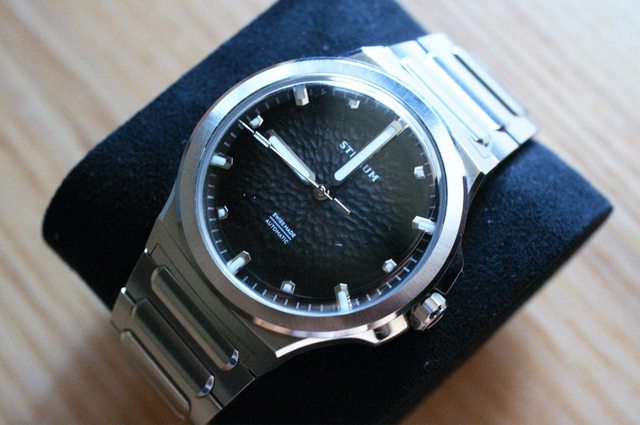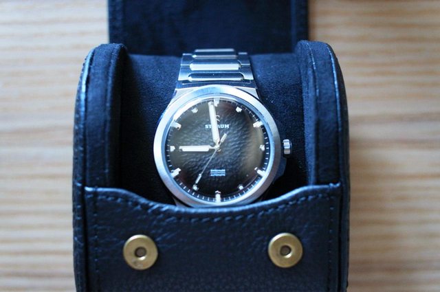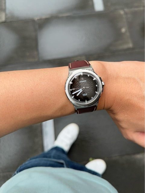 — 品牌名稱:Straum 手錶型號:Opphav 欲售金額:14500 (售出) 所在地:新竹 隨附物件:原廠盒、原廠錶帶(皮帶、精鋼鏈帶)、原廠攜行盒 版上購入,非常特別的錶盤,漸層煙燻黑 沒有保卡,原廠錶帶偏短,個人手腕約17cm剛剛好 原廠皮帶上手照
