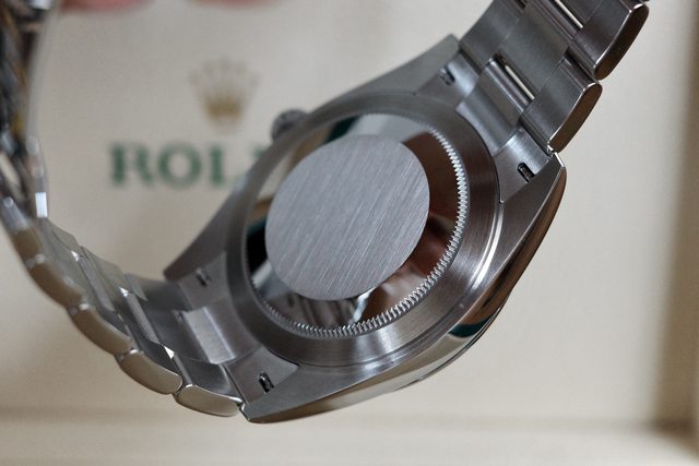 背面就如同大部分的勞力士,為了強大的耐用性而略顯單調