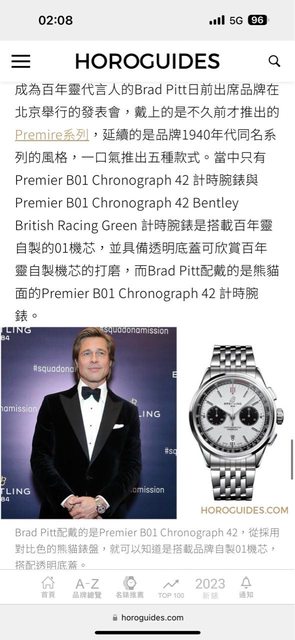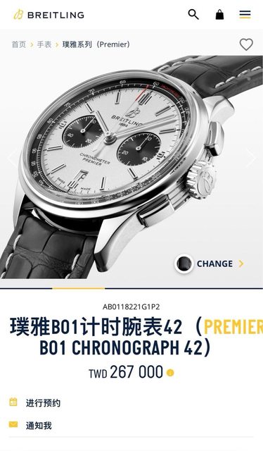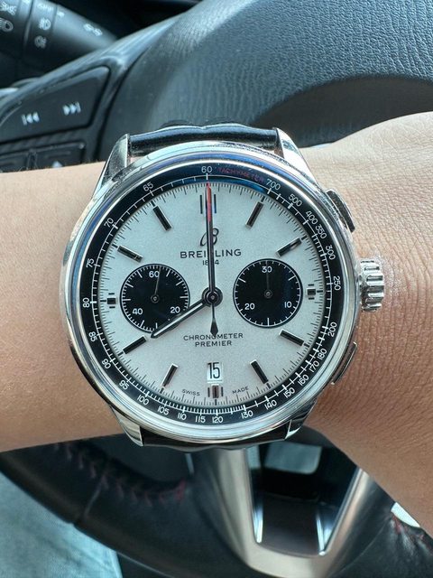 品牌名稱:BREITLING 手錶型號:PREMIER B01 熊貓款 42mm 購買年份:2020/12寶島出品、2023/10購自版友 欲售金額: NT$100,000(最後一降,再低自留) 物品所在地:台北 隨附物件:盒單齊全 聯絡方式:站內信 物件新舊:9成新 物件描述:盒單齊全,無摔無撞,附贈雙峰馬臀皮帶 其他說明:貴重物品面交 去年購自版上友人,購入後戴不到5次(本來要配西裝使用,但發現真的沒什麼機會穿西 裝..),歡迎喜歡熊貓的版友收藏,這只真的是我看過最精緻的熊貓。(之前布萊德彼特 也戴過,只是他換成金屬錶帶,本來打算去更換鋼帶,但後來拖著就忘了) https://i.imgur.com/ap3XUfK.jpeg