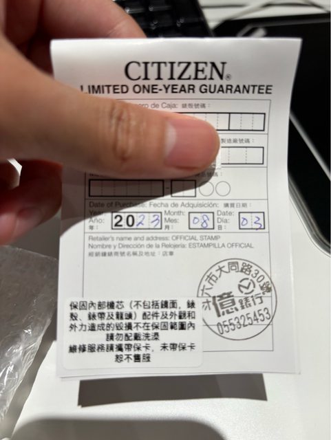 保卡上購買年份日期:2023/8/3;保固兩年