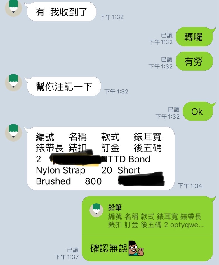 註明英文款式、錶耳寬、長度及亮霧面