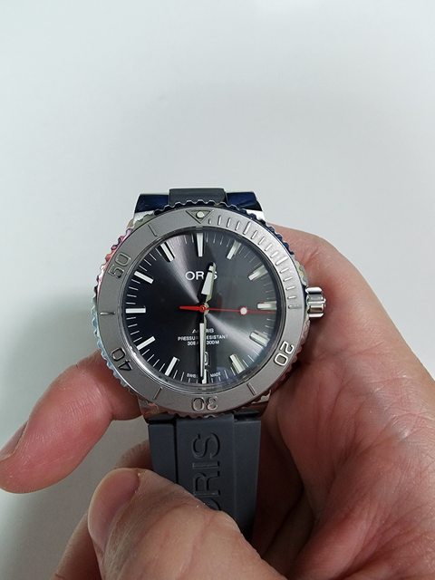標題[賣錶] ORIS AQUIS RELIEF 灰 膠帶