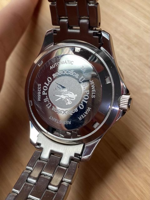 商品:瑞機US Polo奶油金面鋼帶機械潛水錶
